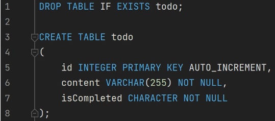 - spring 프로젝트의 resource 디렉토리 하위에 schema.sql 파일 생성 후 SQL 작성