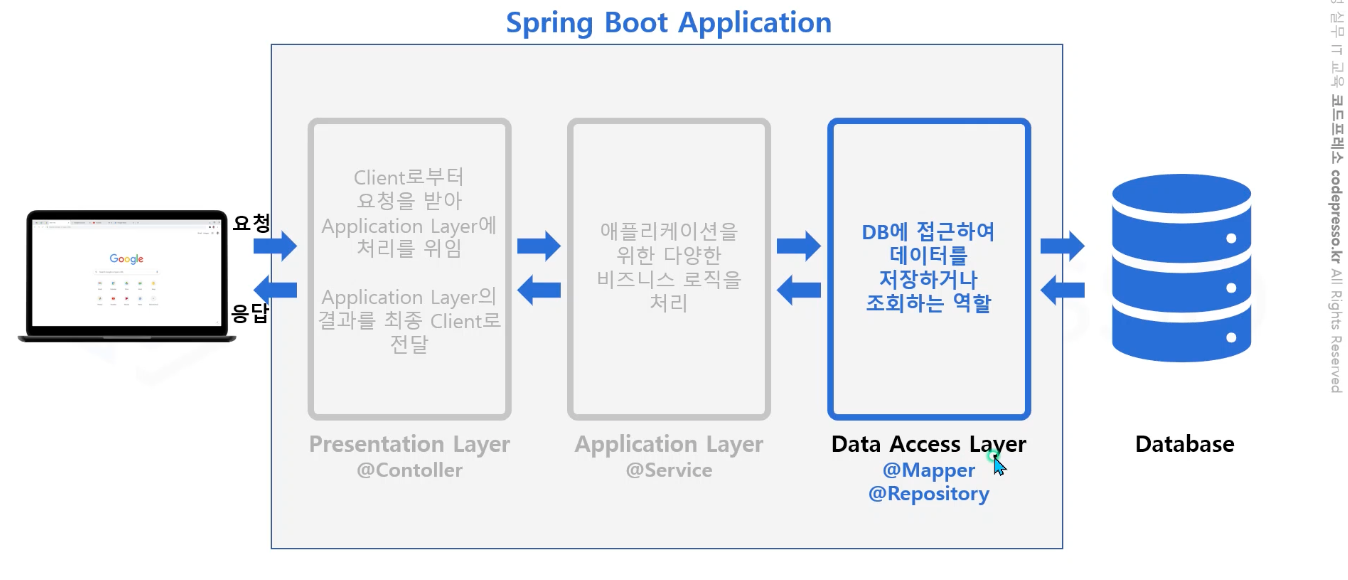 - DB에 접근하여 데이터 저장, 조회 등을 수행하는 역할