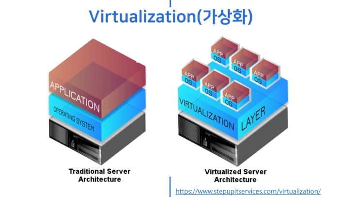 - 가상화는 소프트웨어로 가상의 하드웨어를 생성하는 기술