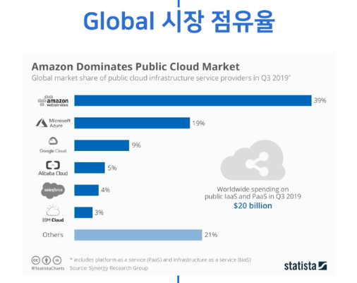- Global로는 AWS와 Azure가 양강 체제